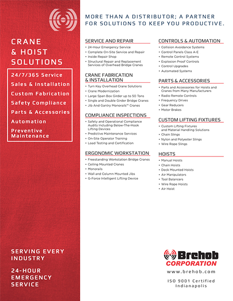 Brehob’s Columbus location opened in 2002 with its crane and hoist division, expanding to air compressor sales and service in 2004. Now our Ohio-based team serves a variety of customer needs, including preventative maintenance programs, inspections, air compressor rentals, and safety training. With a large inventory, custom fabrication, and 24/7/365 emergency service, we can get you what you need, when you need it. Give us a call today.