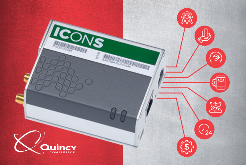 IoT systems may seem complex, but the experience for the user is fairly straightforward, and can ultimately benefit business in a big way. Brehob offers a tool from Quincy Compressor known as the Intelligent Connectivity System (ICONS). Stated plainly, ICONS allows monitoring of air compressor health and collects activity data remotely. This provides many benefits, including: